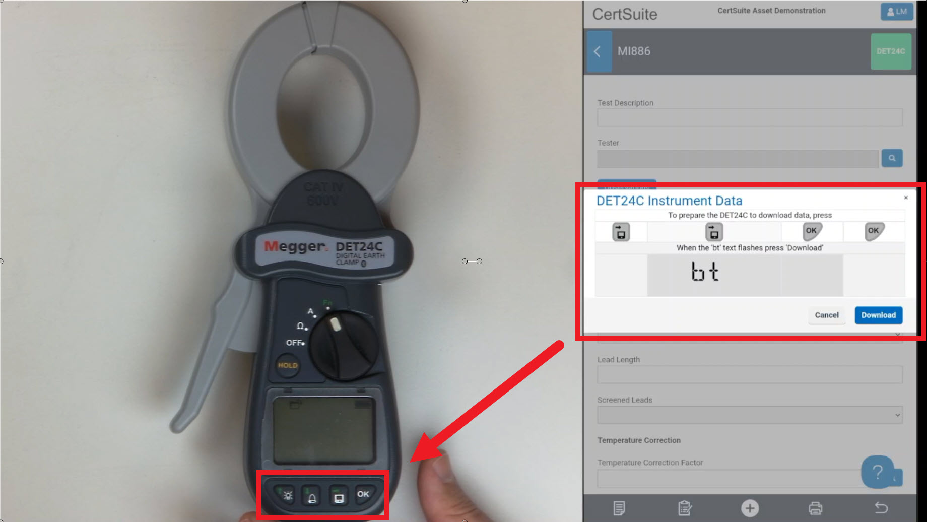 How to download stored data to CertSuite Asset from the DET24C digital earth clamp tester